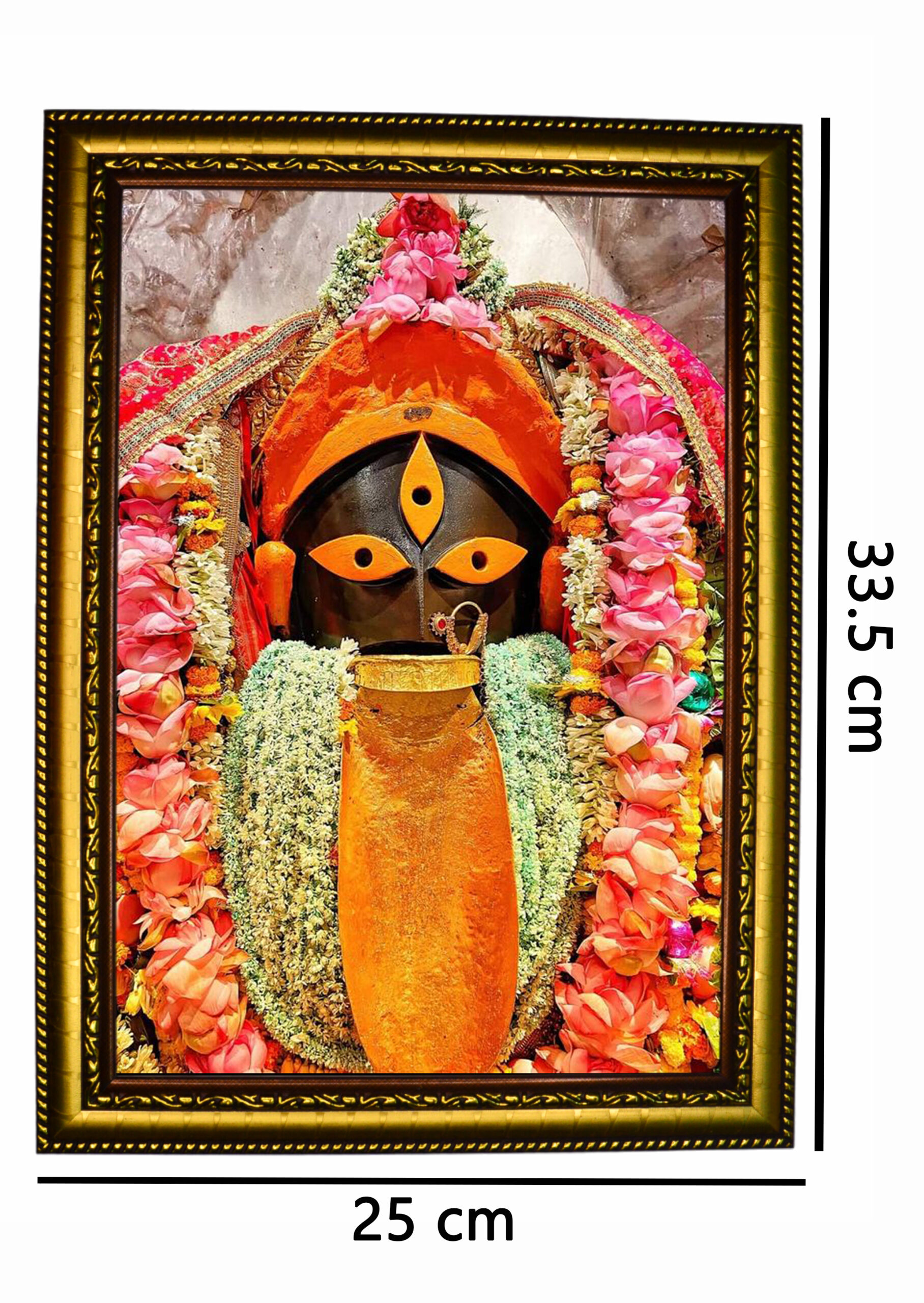 Enhance your spiritual décor with this divine KALIGHAT KALI wall hanging A4 size photo frame, beautifully crafted to bring power, protection, and devotion into your space. Featuring a high-quality, vibrant print of Goddess Kali from the sacred Kalighat temple, this frame showcases sharp detailing and rich, fade-resistant colors. Made from durable and lightweight materials, it is easy to hang and perfect for puja rooms, living rooms, meditation areas, or as a meaningful gift for devotees. The elegant design blends tradition with style, creating a strong spiritual presence while adding beauty and positivity to your home or office décor.